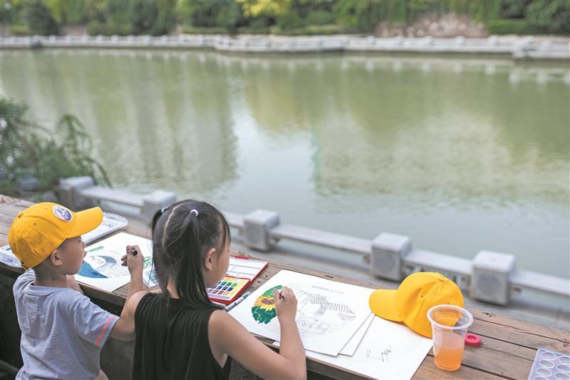 5日,孩子们在运河边画运河。通江街道联合北仓门生活艺术中心在北仓门丝码头露台开展“爱运河,爱无锡”少儿大运河美术写生活动,在作品中表达热爱运河、热爱家乡的情怀。(吕枫 摄)