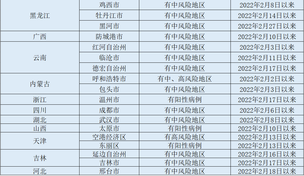 上海市青浦区、黄浦区、宝山区、浦东新区(2月22日以来),