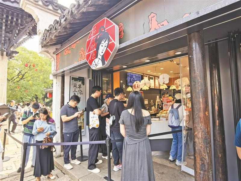 日前,在惠山古镇饮品店前,游客有序排队等待点单。[详情]