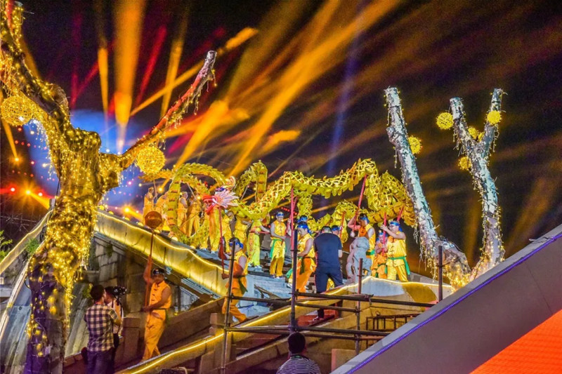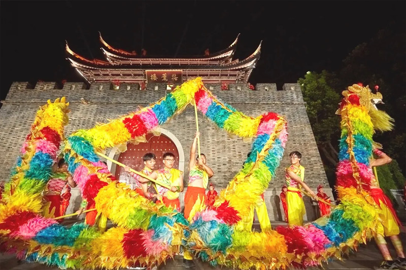 现场,随着夜游古运河的船只缓缓行驶至望湖门,踩着鼓声节点,9名身穿黄衫、腰束红绸的小伙子们娴熟地舞起手中的“凤羽龙”,只见“凤羽龙”在他们手中时而伏地翻滚、时而凌空飞舞,接连上演了“八仙过海、孔雀开屏”等多种套路,出神入化的招式,令慕名而来的观众眼花缭乱,目不暇接。据了解,为顺利完成本次亮相,舞龙团队50多人,历经了6次排练。
