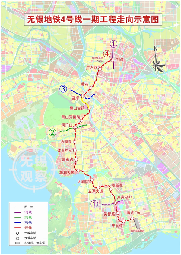 无锡地铁4号线一期起自惠山区刘潭站,途经梁溪区,串联了城北商务区、河埒商务区、蠡湖新城和太湖新城,止于滨湖区博览中心站。线路全长 24.4公里,全部为地下线,设站 18 座。线路建成投运后,将有效缓解无锡城市交通拥堵,提升公交服务与水平,提高无锡放射线网的换乘能力,推动沿线新城和组团的规划建设,加快建设长三角综合交通枢纽,促进城市经济的可持续发展。