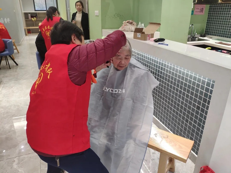 11月25日,惠山区前洲街道新印桥村志愿者与该村日间照料中心工作人员一起,给这里的30多位老人送上贴心服务,让他们在寒冷的冬日感受社会的温暖。
