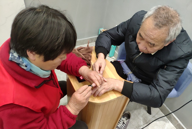 志愿者们为老人送上的服务包括泡脚与修剪指甲。“虽然服务项目很小,但恰恰是老年人十分需要,却又经常被忽视的。”一位志愿者说,这次他们特意使用了先进的红外线泡脚桶,在普通泡脚的基础上增加了温度调控和脚部按摩功能,让老人们的体验更加舒适和放松。当天,志愿者一边修剪指甲,一边与老人们聊起家常,气氛显得十分温馨融洽,老人们都露出了开心的笑容。(陈贤)