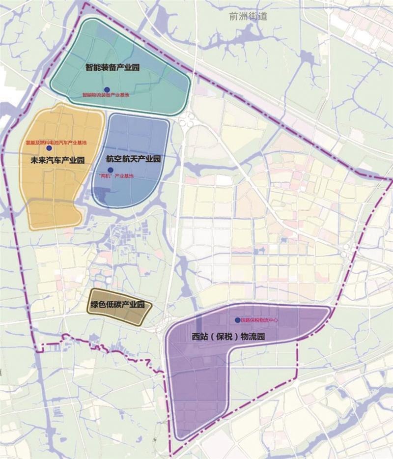 “一廊”即锡西科创走廊。北起惠山城铁科创区,南至太湖湾科创带,集聚更多高端科研、高等教育等优势资源,打造科技创新发展廊道。“两带”即大运河文化带、产城融合发展带。大运河文化带统筹推进大运河文化遗产保护和生态环境保护,有序推进沿河地区生态修复和文创产业发展;产城融合发展带串联起城市活力中心和洗砚湖生态绿心,加强高新区与周边区域的联动发展。“三心”即城市活力中心、洗砚湖生态绿心、大运河科创中心。城市活力中心依托洛社主镇区,结合TOD开发,强化高品质公共服务,展现主城的繁华;洗砚湖生态绿心围绕生态保育,发展休闲旅游,布局高端科技研发功能;大运河科创中心立足锡西科创走廊区位,汇集更多创新资源。“四片”即高新产业片、田园水乡片、综合物流片、城市功能片。高新产业片积极培育创新企业,打造特色产业集群,建设绿色生态产业园区;田园水乡片结合洗砚湖生态绿心建设,打造文旅休闲产业;综合物流片以智慧物流推动西站物流园区信息化转型发展;城市功能片依托洛社市镇和洛南新城,建设现代化宜居城镇。
