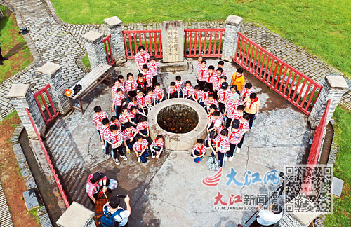 5月26日,学生们在瑞金市沙洲坝红井前留影。本报首席记者 杨继红摄