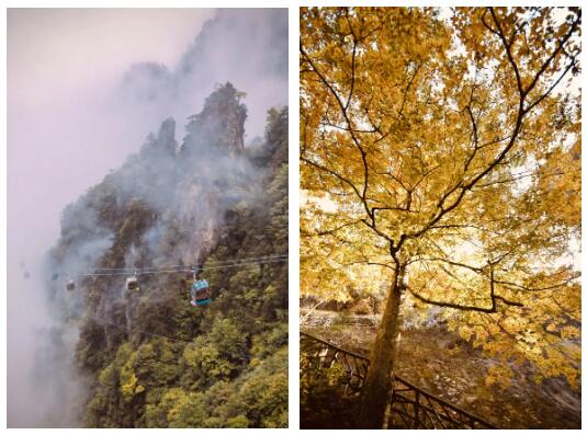 一路向上,全长2000余米的TAN空索正穿梭在云海中,来体验最快每秒6米的速度,在8人座的全景车厢里呼吸负氧离子满满的空气,以上帝视角俯瞰奇峰怪石、漫山斑斓。