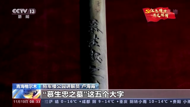 青海省格尔木市将军楼公园讲解员 卢海霞:慕生忠将军在修建青藏公路的同时,他将自己的生死置之度外,所以在自己的铁锹上刻了慕生忠之墓这5个大字。他当时在刻这个字的时候,他就说路修到哪里,如果我牺牲了,那么就把我埋在哪里,它就是我的墓碑。