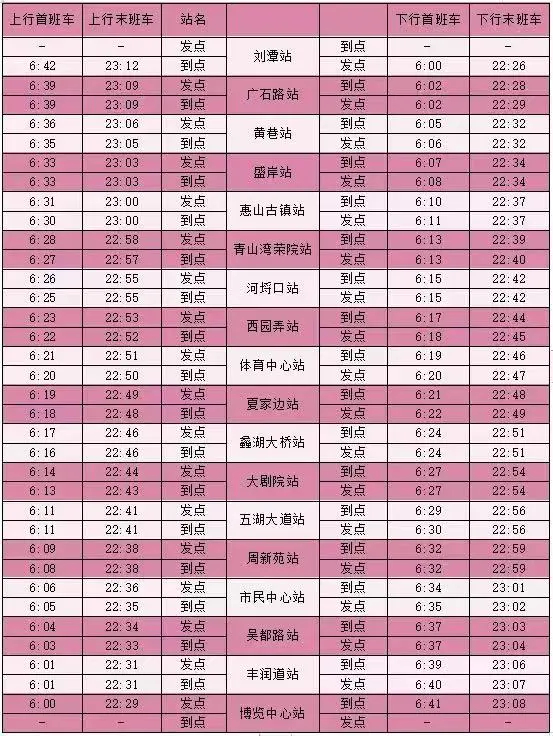 无锡地铁1、2、3号线原首末班车时间不变