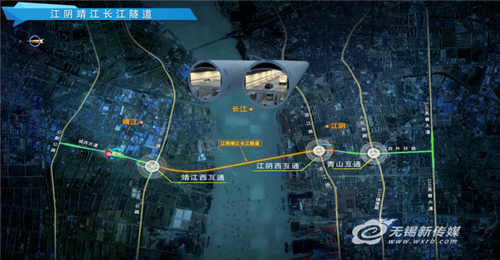 江阴靖江长江隧道工程位于在建常泰长江大桥下游约27千米,江阴长江大桥上游约5千米。隧道的建设将对落实长江经济带发展战略,缓解江阴长江大桥交通压力,增强长江干线过江通道通行能力,促进长三角高质量一体化发展,加快扬子江城市群建设以及跨江融合发展,服务“强富美高”新江苏现代化建设等具有重要意义。