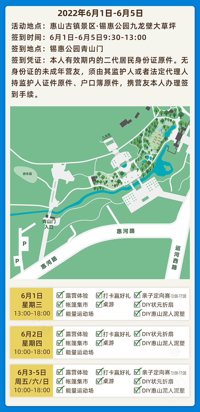 惠山古镇景区管理处将于6月1日至5日推出“2022锡惠·城市大营家”活动,大本营地点在锡惠公园九龙壁大草坪。只要看看关键词,您就知道活动会有多嗨——露营、运动、亲子定向赛、平衡挑战、非遗、国风、家庭、文化、投壶大赛、泥人、啤酒美食、狼人杀、DIY……