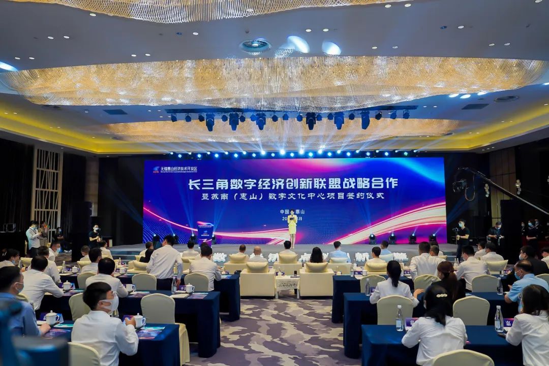 5月27日,长三角数字经济创新联盟战略合作签约暨苏南(惠山)数字文化中心项目落户惠山经开区活动举行,市委常委、宣传部部长李秋峰,市政协副主席、惠山区委书记吴建元出席。