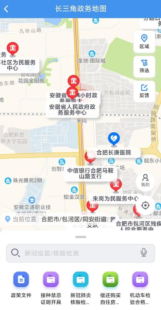 “长三角政务地图”手机截图页面。(安徽省数据资源管理局供图)