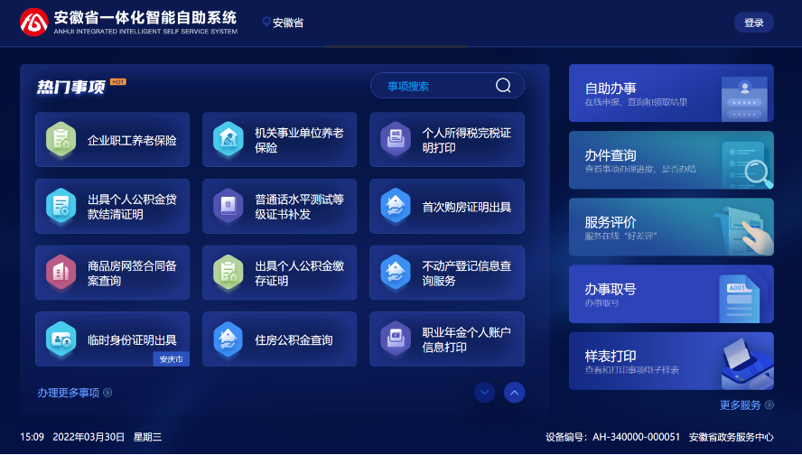 安徽省一体化智能自助系统首页。(安徽省数据资源管理局供图)
