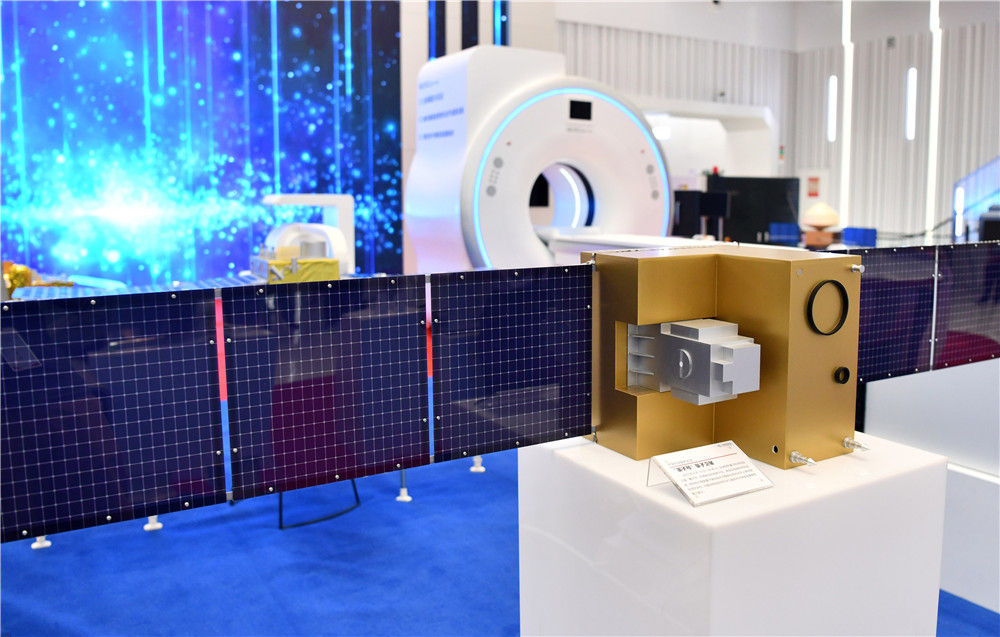在安徽创新馆拍摄的“墨子号”量子卫星模型(2020年8月25日摄)。新华社记者 刘军喜 摄