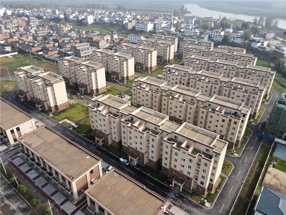 位于安徽省阜南县王家坝镇淮上社区的庄台疏解降容工程居民安置点(2020年10月16日摄,无人机照片)。新华社记者 周牧 摄