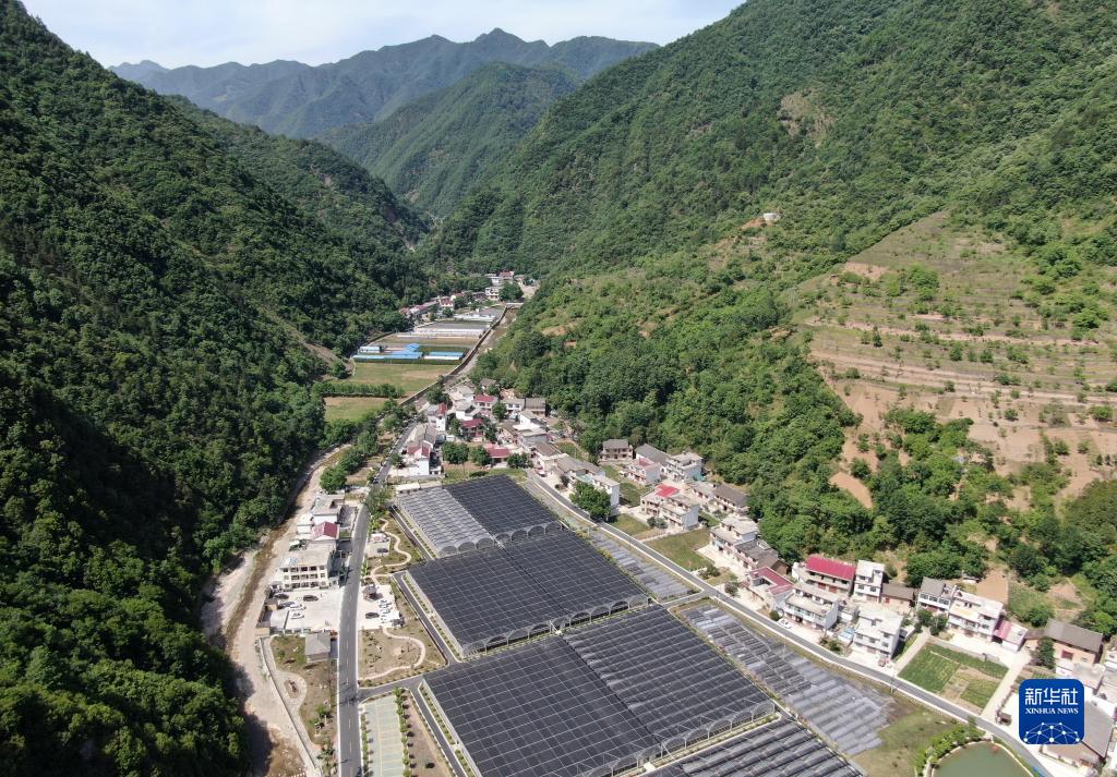 5月30日拍摄的陕西省商洛市柞水县金米村的木耳大棚(无人机照片)。 新华社记者 李一博 摄