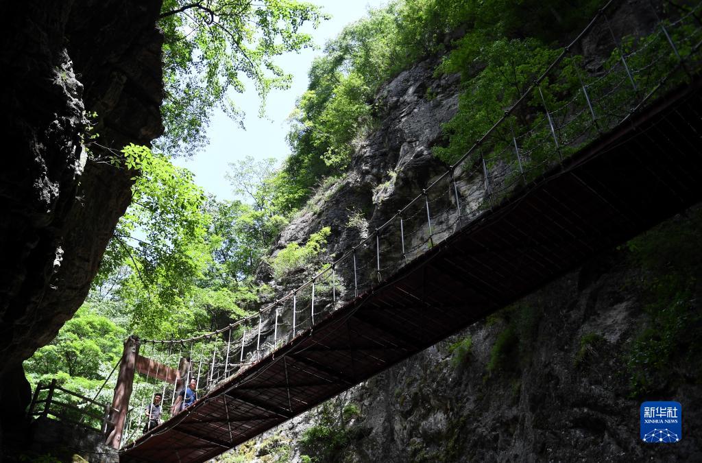 5月30日,游客在位于陕西省柞水县的牛背梁国家森林公园内游玩。 新华社记者 李一博 摄