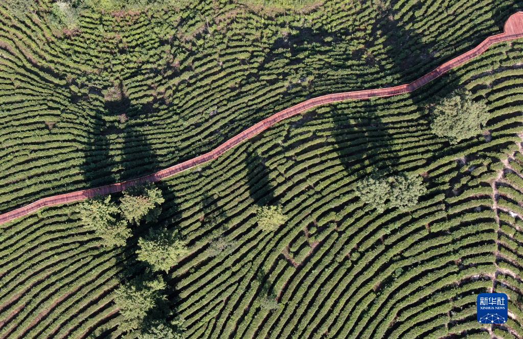 这是6月14日拍摄的陕西省平利县老县镇蒋家坪茶园(无人机照片)。 新华社记者 李一博 摄