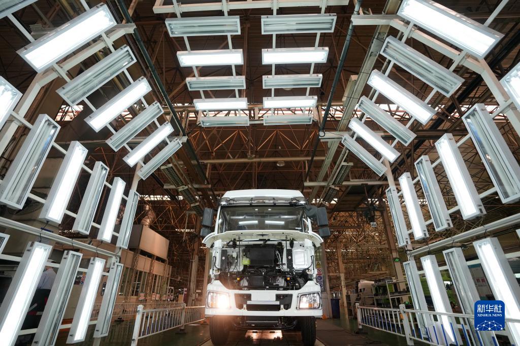 5月24日,在陕西汽车控股集团有限公司总装车间,一辆装配完毕的陕汽重型卡车等待验收。 新华社记者 李一博 摄