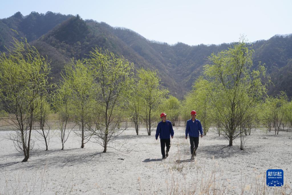 4月7日,金堆城钼业集团有限公司工作人员在经过生态治理后的木子沟尾矿库内巡查。 新华社记者 邵瑞 摄