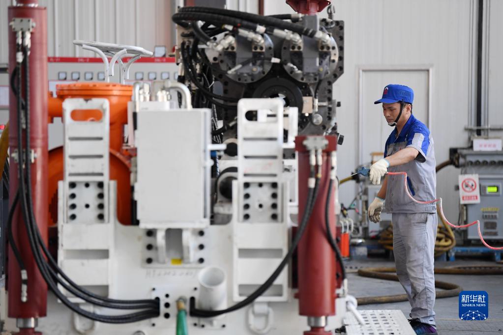 6月17日,在位于秦创原总窗口所在地陕西省西咸新区的陕西太合智能钻探有限公司,工人准备对智能定向钻机进行性能调试。 新华社记者 李一博 摄