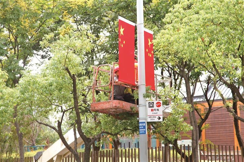 从市文明办了解到,建筑工地、主次干道、商业街、综合体、公共广场、机场车站等窗口都参与中秋、国庆节日氛围布置。相关单位要做好中秋、国庆期间的文明旅游工作,落实公园景区景点和旅行社主体责任,进一步加强引导,提供更高效便捷的文旅服务。(朱冬娅、见习记者 陈霏 文/吕枫 摄)