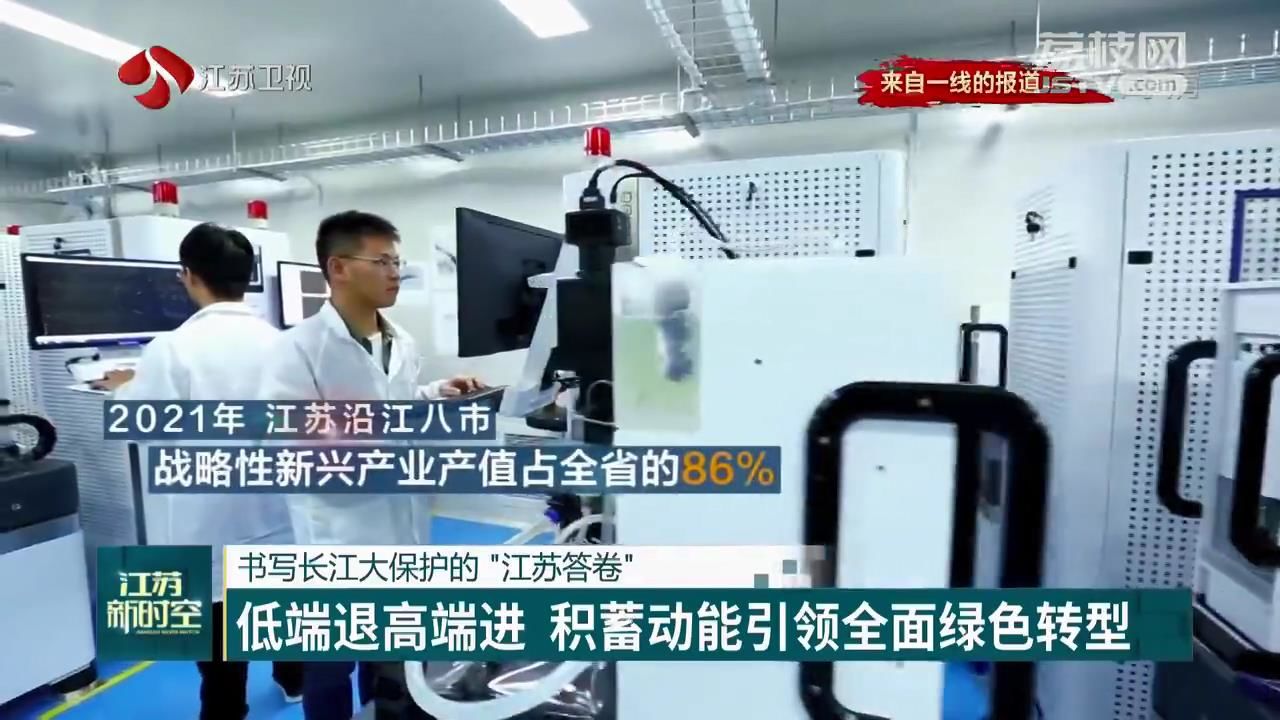 启星智能制造产业园的转变,是江苏加快转型升级、优化产业结构、实现长江大保护的一个缩影。近五年来,江苏累计关停沿江化工企业3505家,压减沿江1公里范围内化工生产企业145家,取消25家化工园区定位,取而代之的是新型碳材料、大医药健康、物联网、集成电路等地标产业相继崛起。2021年,江苏沿江八市战略性新兴产业、高新技术产业产值分别占全省的86%和87.4%。绿色发展探新路,全省30条优势产业链不断做强,涌现出6个国家级先进制造业集群,培育出一批专精特新“小巨人”企业和单项冠军企业,蹚出了一条发展与美丽同行之路。