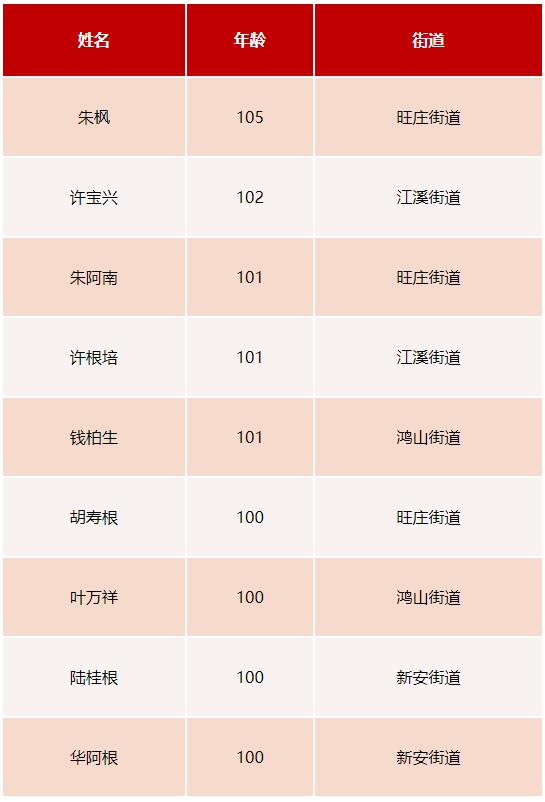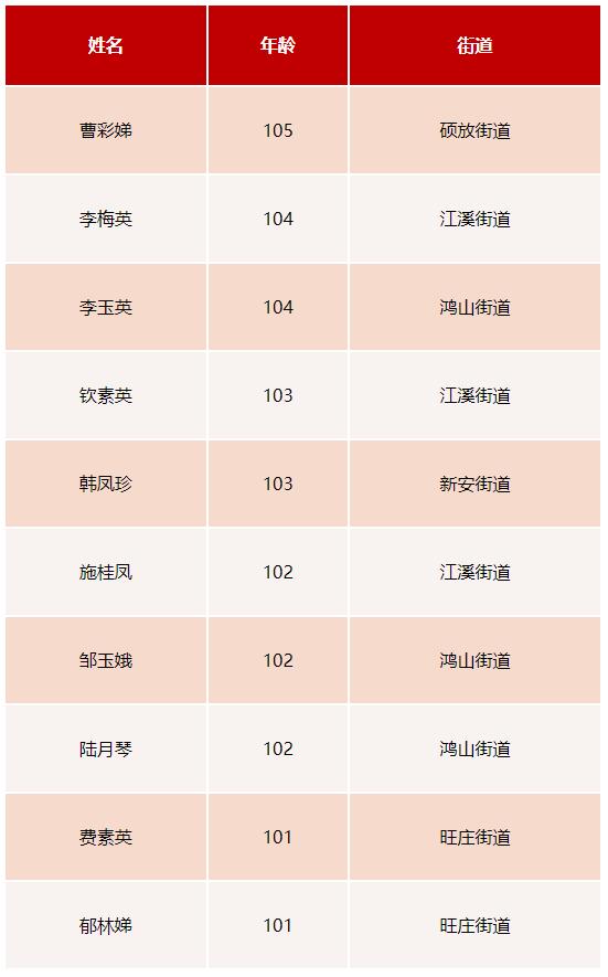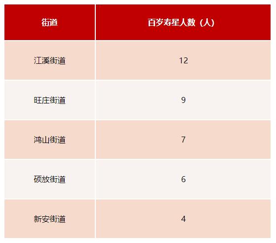 截至2022年10月,新吴区有38名百岁老人。其中,男性9名(占比24%)、女性29名(占比76%),现年105岁的朱枫与现年105岁的曹彩娣分别为新吴最高寿的男寿星、女寿星。此外,今年,新吴区有1对百岁伉俪,百岁寿星也由2021年的30人增长到38人,同比增长27%。