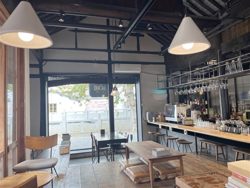 老宅内有许多格栅和玻璃搭配的设计,既有木的温润,又能引入明亮的自然光。第一进是一间咖啡厅,集美食、阅读、艺术沙龙于一体,可以办公,也可以与三五好友聊天。在保留老建筑特有的光影和底蕴中,打造一处公共空间来品味乡愁、乐享文化,吸引着许多人来到这里。