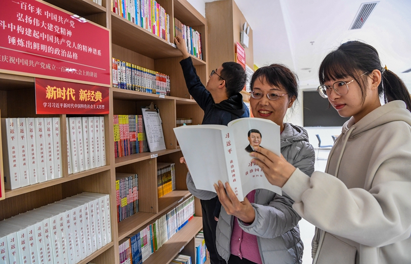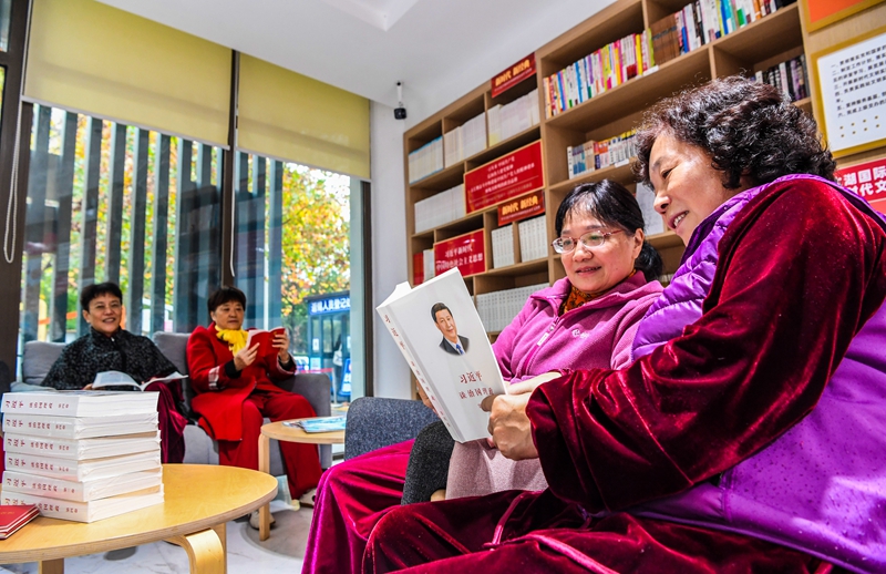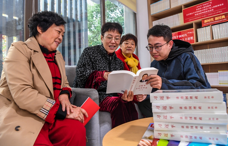 12月4日,太湖国际社区党员和居民在“红色阅读室”里一起阅读交流、分享感悟。为方便社区居民前来办事时阅读、休息,该社区在党群服务中心24小时公共客厅内打造“红色阅读室”,集中放置红色书籍、党史文献资料以及自然科学、历史地理、文学艺术等多种类图书,采取自助借阅、图书漂流等管理方式,将社区公共区域充分活化,为社区党员和市民了解红色历史和相关知识提供阵地。