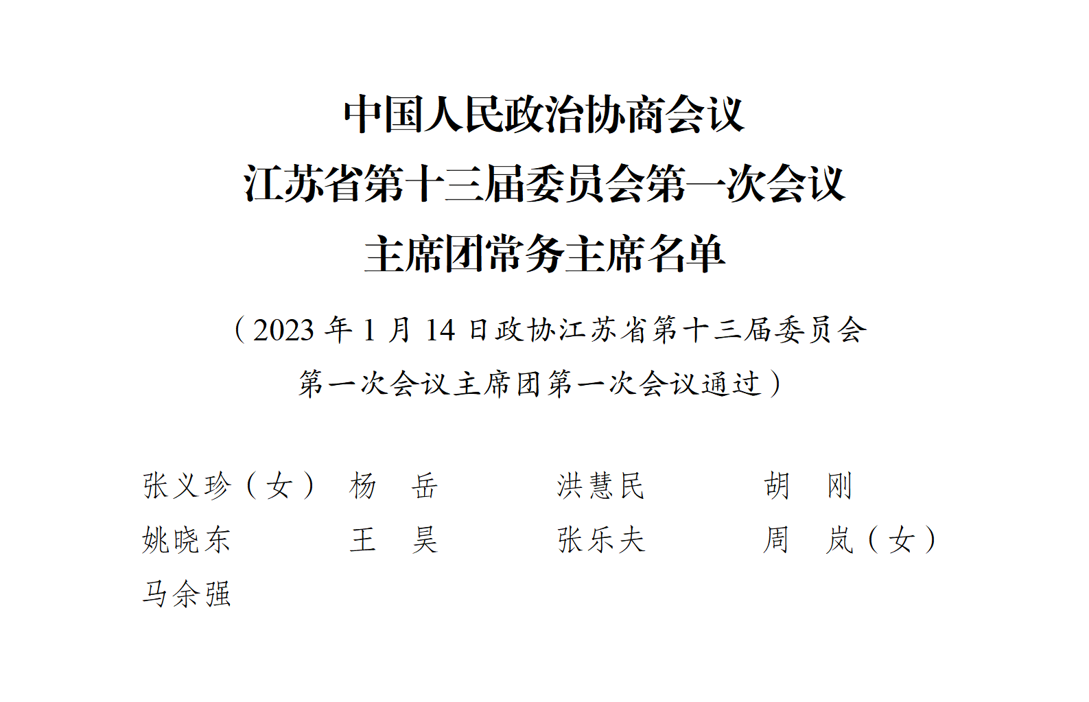 中国人民政治协商会议江苏省第十三届委员会第一次会议主席团常务主席名单
