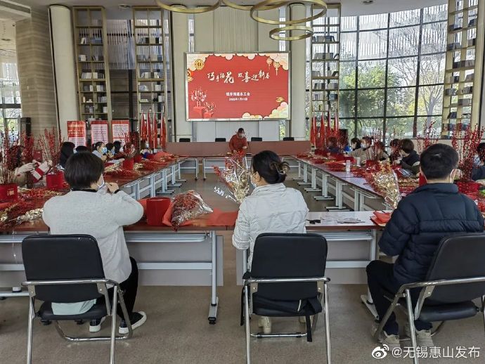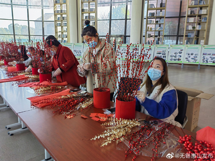日前,钱桥街道职工服务中心开展“巧手插花·欢喜迎新春”插花活动,30余名留惠过年职工兴致勃勃参加了活动。活动现场,花艺老师热情地为大家介绍了年宵花的由来和制作所需要的材料,随后分步讲解了年宵花的修枝、插花过程和注意细节,并详细演示了插枝的先后顺序、摆放位置和角度。大家兴致勃勃,忍不住想要一试身手。大家用自己灵巧的双手修剪花枝,根据不同形状搭配到一起,红红火火的冬青果、栩栩如生的银杏叶、金光灿灿的尤加利叶、可爱喜庆玉兔……再挂上新春小挂件进行点缀,形成了一盆盆红红火火、错落有致的年宵花作品。看着自己亲手创作的插花作品,大家感到满满的成就感与幸福感。