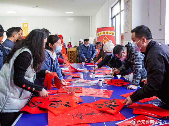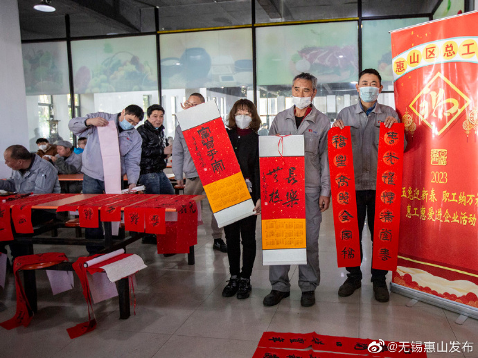 连日来,在无锡戴卡轮毂制造有限公司、无锡中彩新材料股份有限公司等企业的职工餐厅,到了中午用餐时间,显得异常热闹,听小戏、领春联、拍福照,职工们既享受着美味的公司午餐又享受着精彩的文化甜点,喜气洋洋的迎春氛围让大家感到暖融融、乐呵呵。兔年春节前夕,为落实区委“稳生产留工、强政策留岗、送温暖留心、优服务留人”的工作要求,惠山区总工会推出了“健康美好相约‘惠’ 工会陪你过大年”活动,组织各类小分队联合行动,一连十天,直到年根,走进企业生产一线,来到职工身边,把福味道、春讯息、暖信心送到职工心坎上,陪着职工朋友一起迎新春过大年。