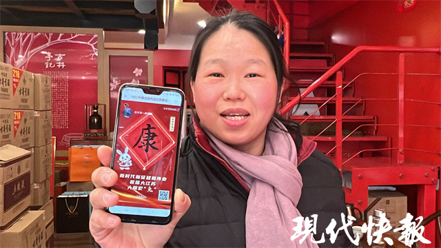 会场外,市民也积极参与互动,书写新年新期待,并转发朋友圈。南京市民程梅打开H5,左右滑动后,选了关键字“旺”。她说,自己开了30多年的连锁商超,经营中也经历了不少风风雨雨,不过最难熬的时候已经过去了,她对新的一年充满希望。“我选择‘旺’,祝愿每一个商家都生意兴旺。”