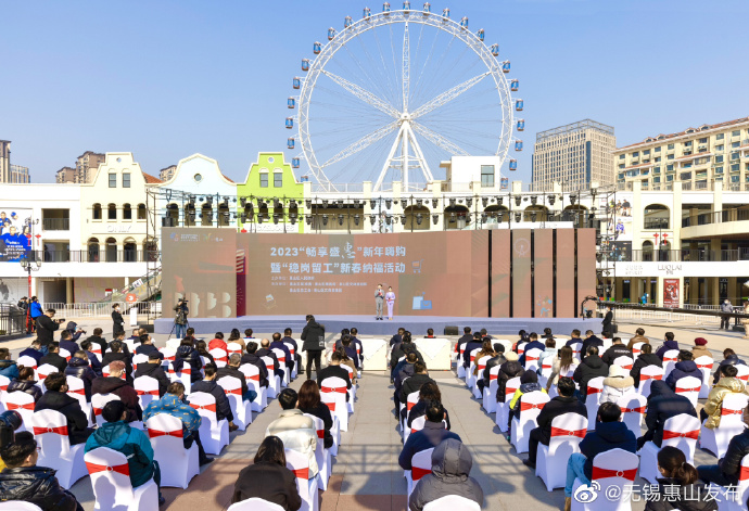 1月18日,由惠山区人民政府主办,区发改委、商务局、文体旅游局、总工会、文商旅集团共同承办的惠山区2023“畅享盛惠”新年嗨购暨“稳岗留工”新春纳福活动在悦尚奥莱盛情开启,现场揭晓一系列超强力度的新春嗨购福利和稳岗留工政策,商圈、商超、酒店、电商平台联动促销,为广大市民、外地职工和来锡游客提供更多消费便利和优惠,营造喜庆祥和、暖心实惠的春节消费氛围。