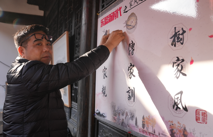 乐善堂展堂中,陈书记一行驻足在为期20天的“传家训、立家规、扬家风”书画作品展前,边欣赏精选书画,边诵读书法内容。近百幅围绕”和睦、忠孝、勤劳、节俭、勤学、修身、立业“等精心创作的书画作品深深地吸引了他们,赞誉声和感叹声连续不断。