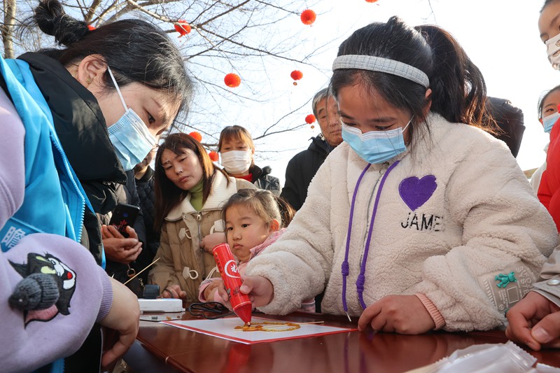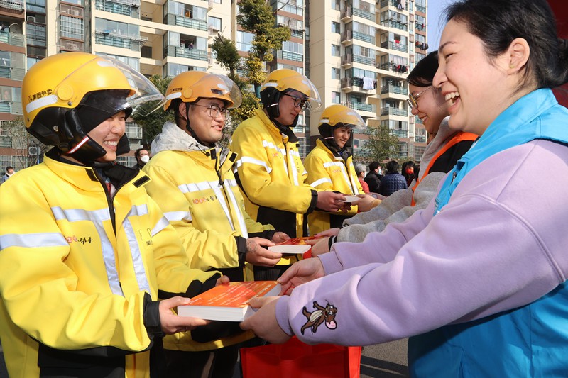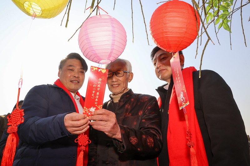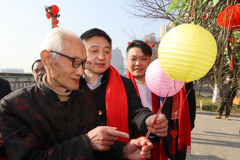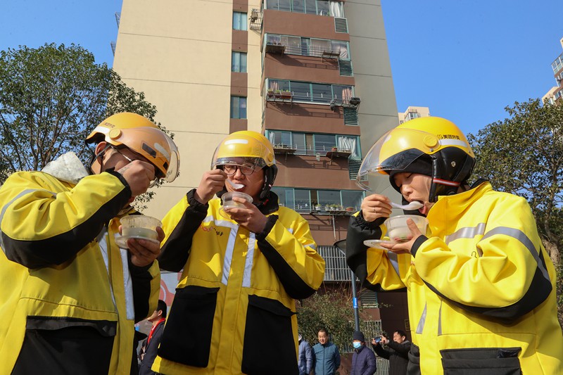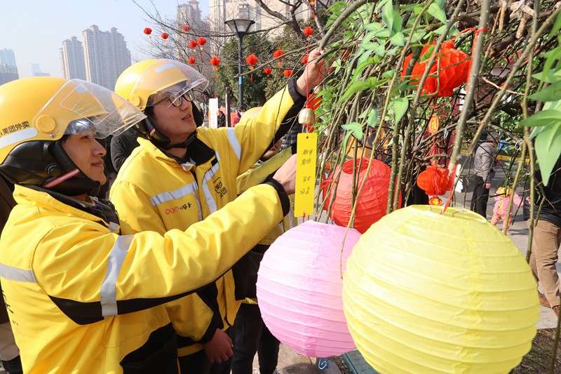 2月1日,梁溪区瞻江街道黄泥头社区与辖区党建联盟单位联合开展欢乐闹元宵活动,社区网格员、居民代表、青少年等与坚守工作岗位的外卖小哥一起猜灯谜、画糖画、品汤圆,让他们在第二故乡共享团圆,感受传统文化的独特韵味。(朱吉鹏 摄)