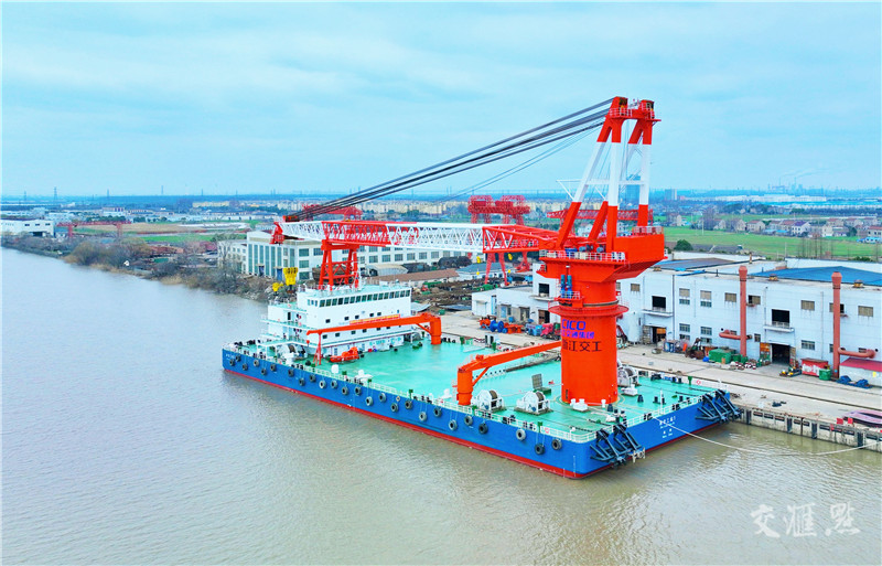 【如皋】2月21日,“浙交工起1”大型海上起重船停泊在长江如皋段,将于近期驶往福建进行海上作业。当日,由南通长青沙船舶工程有限公司为浙江交工集团投资承造的“浙交工起1”起重船正式交付使用。该船长114.5米、宽36米、型深6.8米,安全起重量为800吨(固定)/650吨(全回转),是浙江交工集团目前最大的起重船。 薛冯 吴树建/摄 视觉江苏网供图