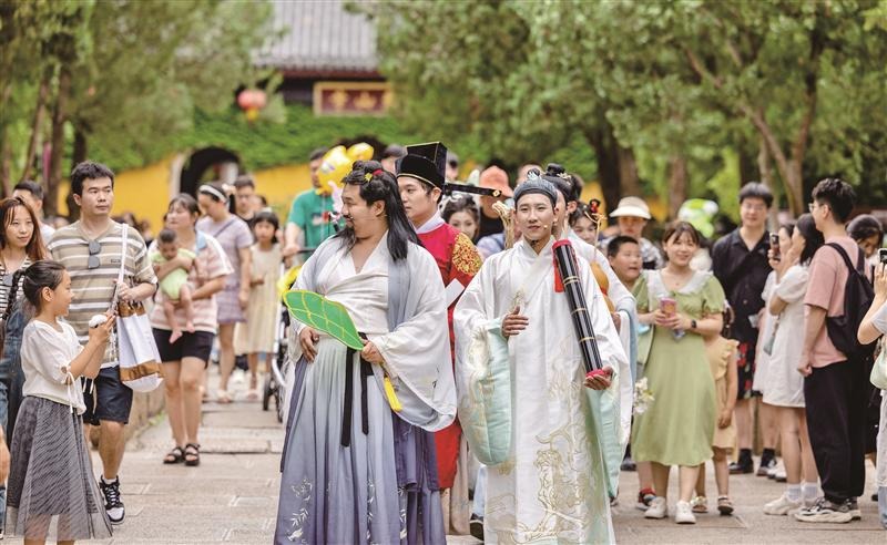 惠山古镇在小长假期间推出了古装巡游活动,吸引大批游客前来。(刘芳辉 摄)