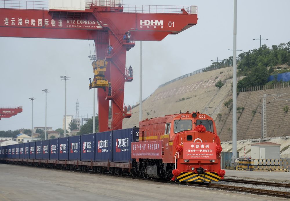 由江苏连云港开往土耳其伊斯坦布尔的中欧班列缓缓驶出中哈连云港物流合作基地(资料照片)。新华社记者 季春鹏 摄