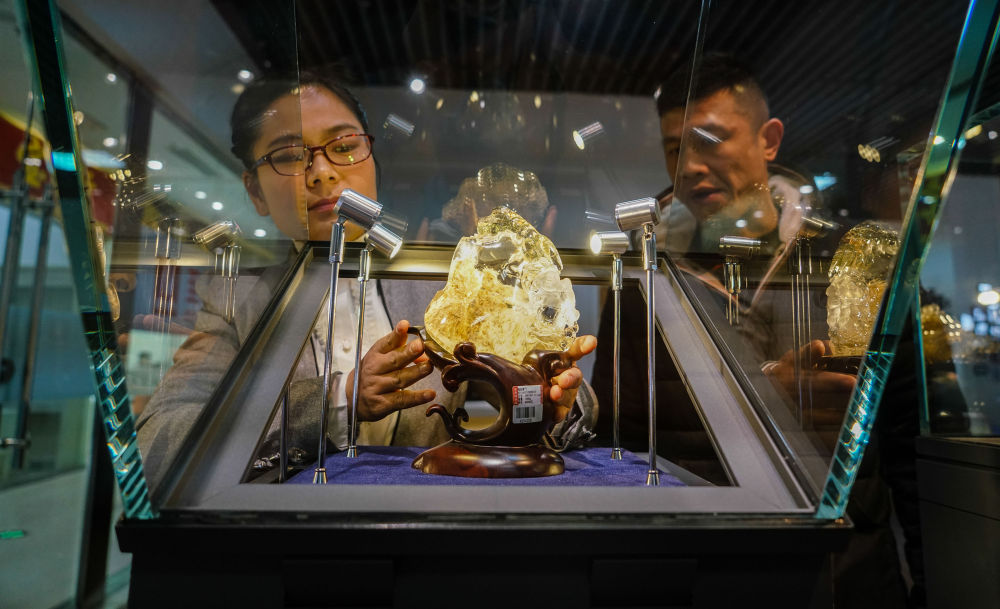 中国东海水晶城的一家商户在陈列水晶制品(资料照片)。新华社记者 季春鹏 摄