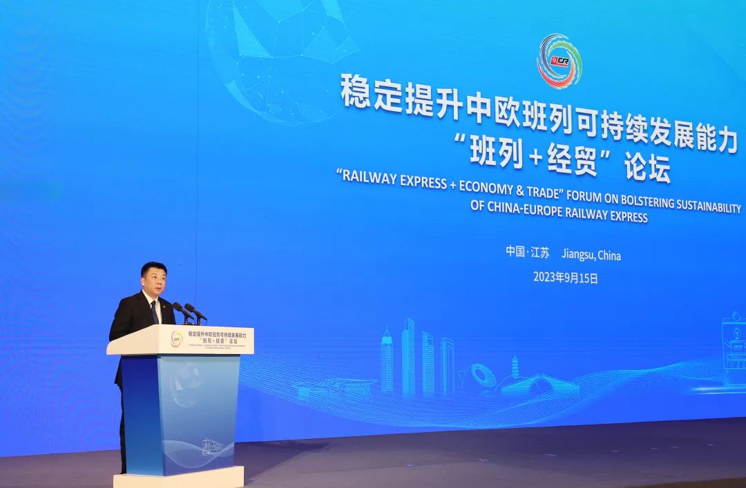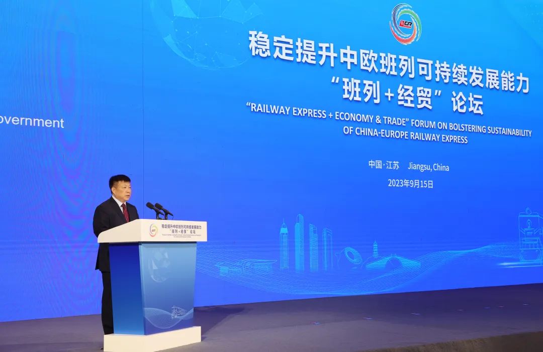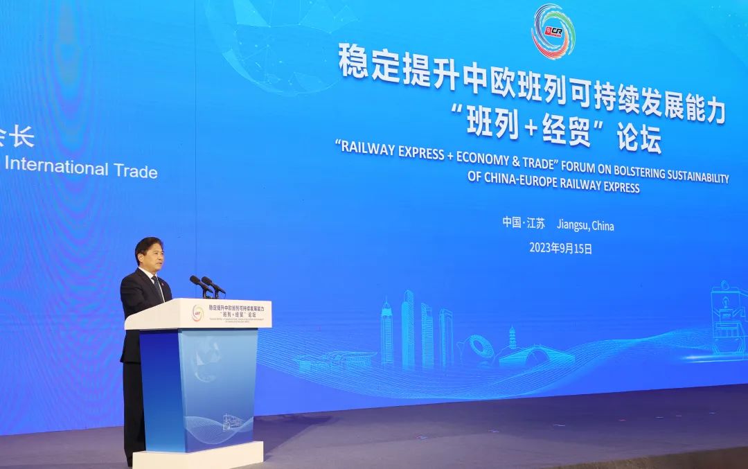 方伟向出席论坛的各位嘉宾表示热烈欢迎。他表示,近年来,江苏深入贯彻习近平主席关于推进“一带一路”建设的重要论述和对江苏工作重要指示精神,扎实推进“一带一路”交汇点建设,推动中欧班列高质量发展,为全省稳外贸稳外资、产业链供应链稳定提供了有力支撑。我省产业基础坚实、交通区位优越、市场规模巨大,发展中欧班列优势突出、潜力巨大、前景广阔。下一步,将深入贯彻落实习近平主席致中欧班列国际合作论坛的贺信精神,着力强化中欧班列保障能力,积极完善沿线海外仓网络,加快建设境内外揽货体系,推动运贸融合发展,不断提升中欧班列可持续发展能力,全力为绘好共建“一带一路”“工笔画”增添更多江苏色彩。希望各位嘉宾抓住契机,围绕“班列+经贸”主题,深入交流探讨,广泛凝聚共识,努力达成更多合作成果,共同为加强“一带一路”共建国家间的经贸合作,为构建人类命运共同体、书写互利共赢新篇章注入新动能。