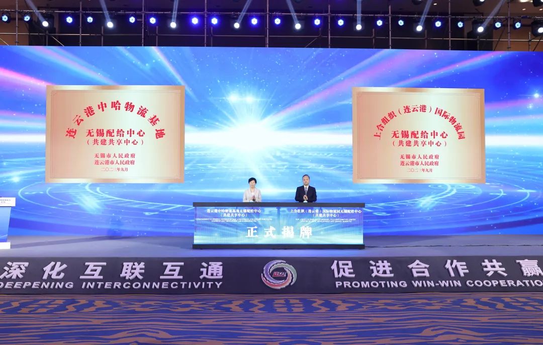 一系列合作成果接连落地,助力“钢铁驼队”驰骋新丝路。论坛上,连云港中哈物流基地无锡配给中心(共建共享中心)、上合组织(连云港)国际物流园无锡配给中心(共建共享中心)揭牌。