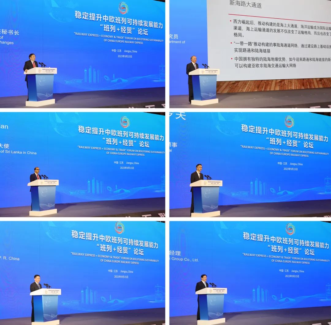 从太湖之畔到黄海之滨,与会嘉宾共话中欧班列可持续发展愿景、共绘“班列+经贸”美好蓝图。中国国际贸易促进委员会江苏省分会副会长丛苏峰,中国物流与采购联合会会长助理胡大剑,中国物流集团国际速递供应链管理有限公司董事长、中国物资储运协会会长李勇昭,伊朗驻华大使馆公使衔参赞、驻上合组织秘书处常驻代表阿里·内马提进行主旨演讲。国内外高端智库和相关行业领域专家还围绕中欧班列助力“一带一路”高质量发展、中欧班列与跨境电商等议题进行围桌对话,分享见解观点。