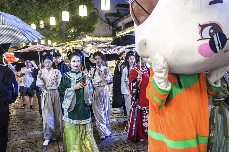 “非遗+国潮”让市民、游客趣游惠山。“本次活动还将在西神广场重现明清时期繁忙兴盛的泥人工坊,让游客身临其境感受惠山泥人文化底蕴,在绣嶂街中段举行‘非遗美食汇’,通过美味可口的非遗美食吸引游客消费打卡。”惠山古镇景区品牌营销中心总监杨云介绍,除了非遗呈现,景区全新推出《质子战舞》《茶香茗秀》《风雅锡山》等年轻人喜闻乐见的国潮舞秀、互动问答环节,打造惠山古镇中秋、国庆非遗奇妙夜沉浸游。