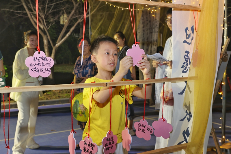 近日,梁溪区广益街道毛岸新苑社区以“我们的节日”中秋佳节为契机,举办“月圆风雅颂 睦邻乐事集”游园会,通过汉服巡游、诗词朗诵、乐器表演、歌舞互动等文化活动,让辖区居民沉浸式体验传统文化之美,欢度中秋国庆双节。(朱吉鹏 摄 )