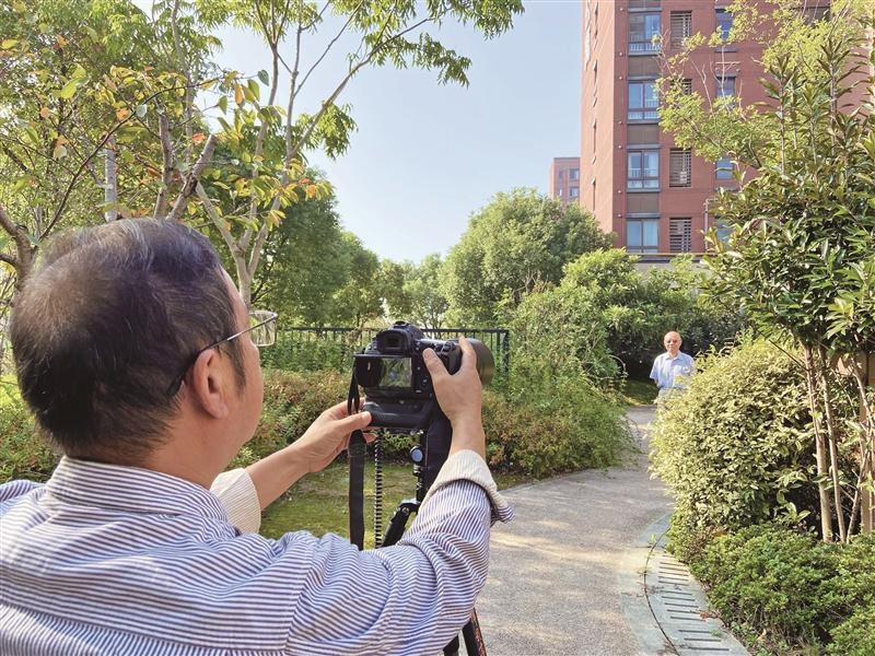 近日,新吴区新安街道观湖社区新时代文明实践站开展了“定格最美夕阳红”摄影活动,来自辖区的摄影爱好者、化妆师、社工等志愿者一起为老人拍摄写真,定格幸福瞬间,为他们送上了一份珍贵的重阳节礼物。(吴信 摄)