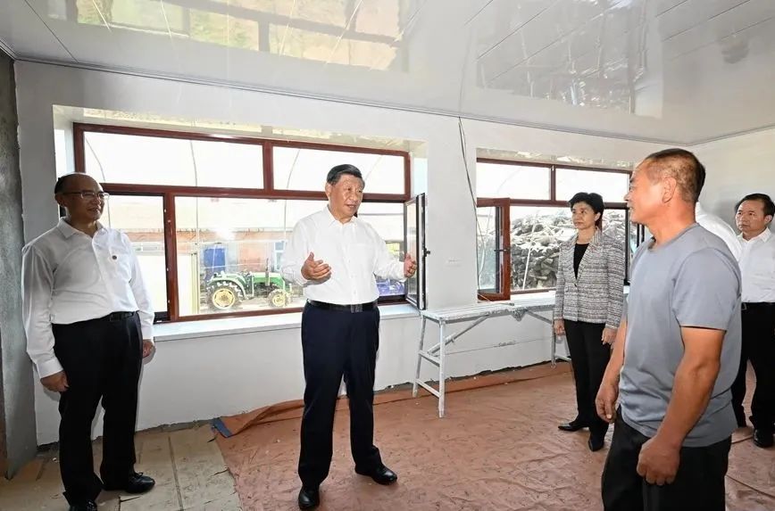 △2023年9月7日,在黑龙江尚志市老街基乡龙王庙村,习近平总书记走进村民杨春贵家中,察看受损房屋修缮情况。