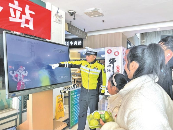 除此之外,交警部门利用科技设施和科技手段来保障市民朋友们的出行。“在交通大流量期间,交警部门会通过警车或作业车发送实时路况信息到导航软件上,驾驶员可以实时了解路况信息,及时调整行车路线。不仅如此,我们还在堰桥服务区实时播放江阴大桥的路况信息,方便驾驶员及时了解。”
