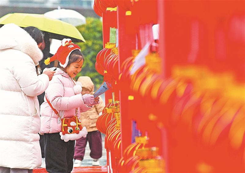24日下午,人们在南禅寺景区猜灯谜。当日是元宵节,无锡各地开展丰富多彩的闹元宵活动,不少市民走出家门,感受传统节日氛围。(还月亮 摄)